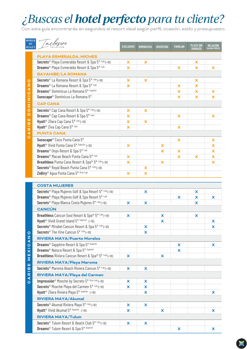 Guía práctica para encontrar el Hyatt perfecto segun perfil, estilo y presupuesto de tu cliente